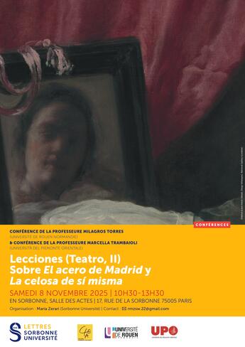 Dans le cadre des activités du LEMH, sous l'axe "Théâtre du Siècle d'or", Mme la Professeure Milagros Torres, de l'Université de Rouen Normandie et Mme Marcella Trambaioli, de la Università del Piemonte Orientale, présenteront des conférences lors d'une séance intitulée