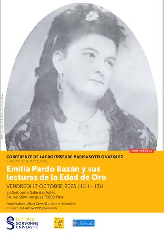 La Professeure Marisa Sotelo Vázquez, de l'Université de Barcelone, donnera une conférence intitulée "Emilia Pardo Bazán y sus lecturas de la Edad de Oro". Cette conférence sera l'occasion de lancer le cycle "Le Siècle d'or vu par...", auquel le LEMH consacrera une partie de ses réflexions au cours de l'année qui s'ouvre.