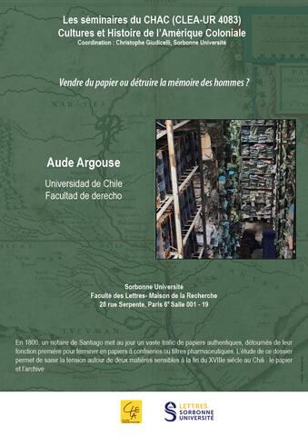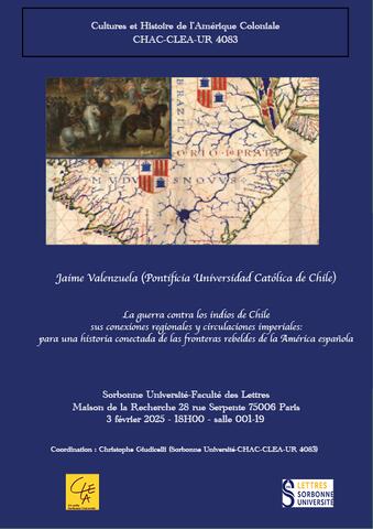 Le séminaire 25-26 de CHAC Le programme et les annonces des séances du séminaire 25-26 de CHAC sont disponibles ici. share twitter facebook linkedin mail print Tout voir CHAC - Le séminaire 25-26 12/11/2025 : El bueno, el malo y el feo. Fronteras bélicas y etnogénesis discursiva en Francisco Combés (Filipinas, mediados del siglo XVII) CHAC - Séminaire 2024-2025 (Programme) CHAC - 20 mai 2025 : Vendre du papier ou détruire la mémoire des hommes? CHAC-28 mars 2025 : La ultraderecha contra la historia. El conflico Mapuche en Argentina CHAC - 03 février 2025: La guerra contra los indios de Chile, sus conexiones regionales y sus circulaciones imperiales: para una historia conectada de las fronteras rebeldes de la América española CHAC - 14 octobre 2024: El método de acomodación en el mundo ibérico. Nuevas reflexiones en torno de un antiguo tema CHAC - 07 octobre 2024: Arqueología de tiempos modernos en la Patagonia. Pueblos originarios antes y después de la conformación de los estados nacionales